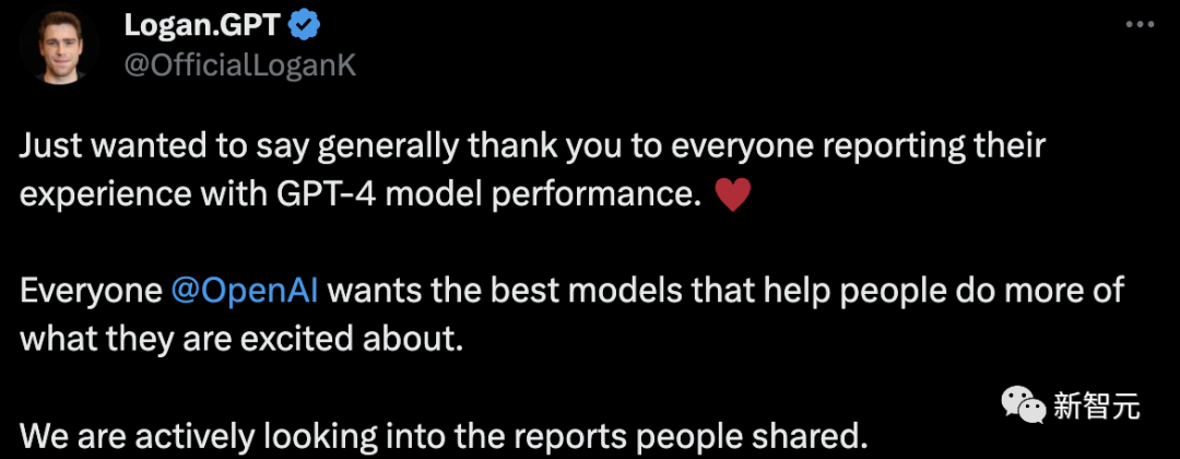 就连OpenAI站出来,表示对此关注,正积极调查大家分享的报告。