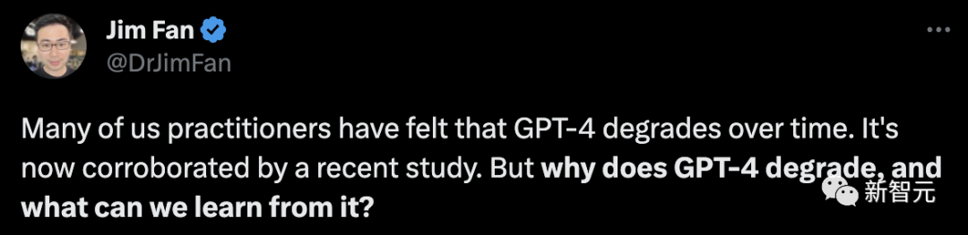 英伟达科学家Jim Fan表示,我们中的许多从业人员都认为,GPT-4会随着时间的推移而退化。