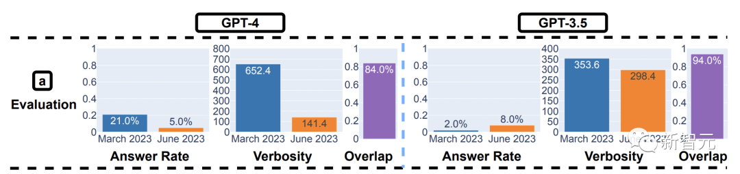 结果显示,对于GPT-4和GPT-3.5,从3月到6月,精确匹配率均提高了2%。响应长度大致不变。
