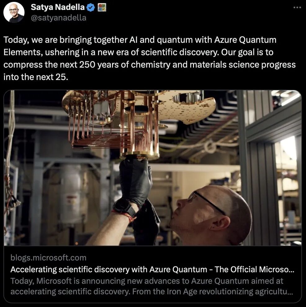 6月,CEO纳德拉曾公布了微软宏伟目标,10年内建造出量子计算机。