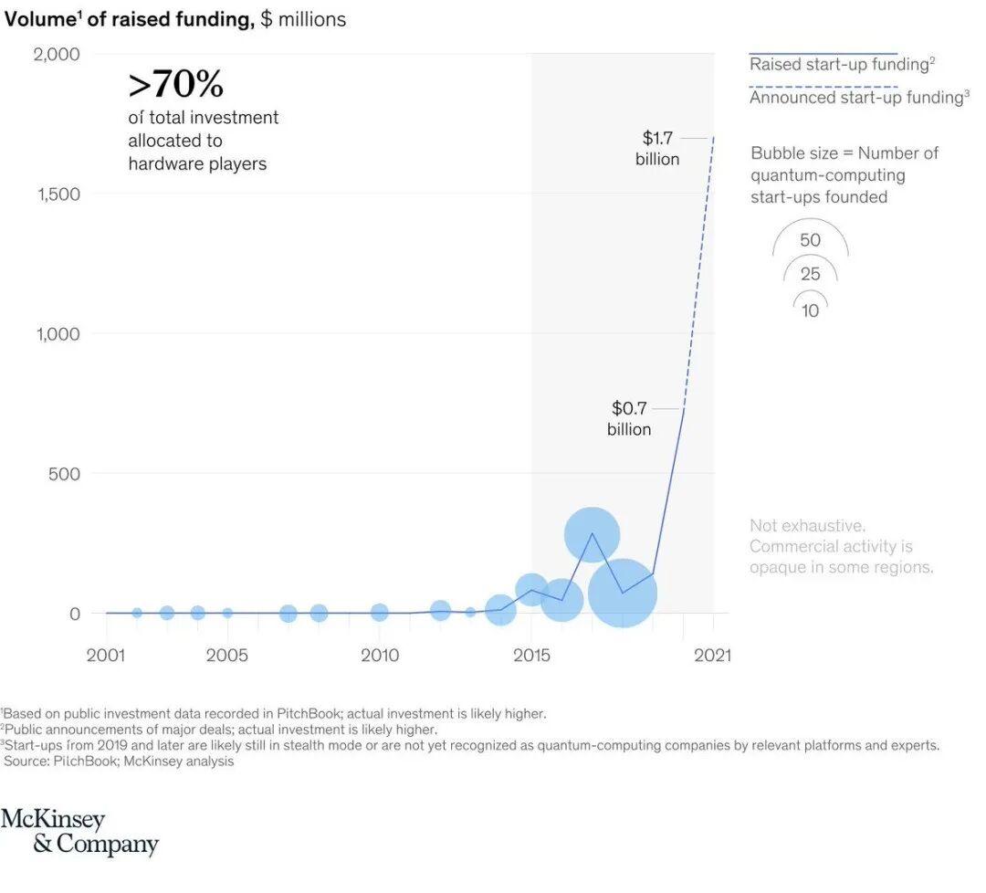 有研究统计,自2015年以来量子计算的投资走势不断上涨。