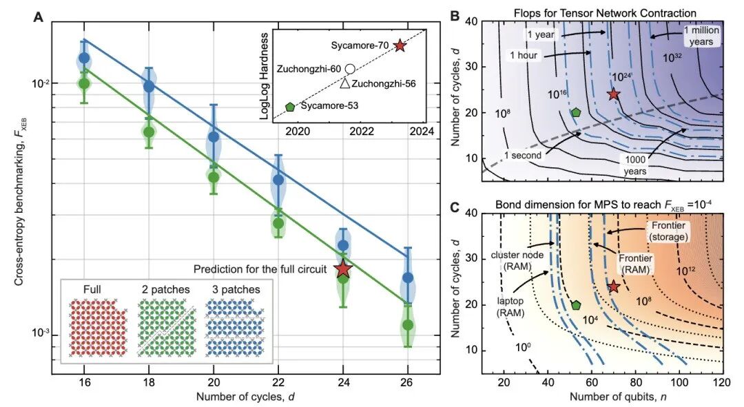 「我们根据改进的经典方法估算了计算成本,并证明我们的实验超出了现有经典超级计算机的能力。」