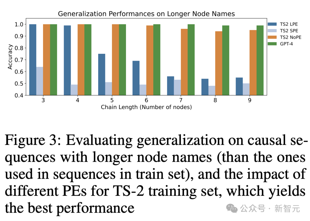 结果发现,TS2(NoPE)对节点名称的变化很稳健,在引入新的、更长的名称时仍能保持较高的准确率。它还保持了对新节点名称较长序列的通用性,其表现与GPT-4相似。
