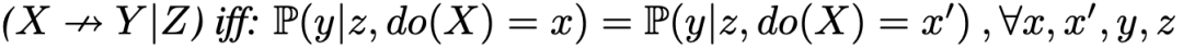 所谓的「稳定概率」(stable probabilistic)因果模型,是指他们对模型作出的稳定性假设,指M中所有的不相关性(X ↛ Y|Z)都是稳定的,写作: