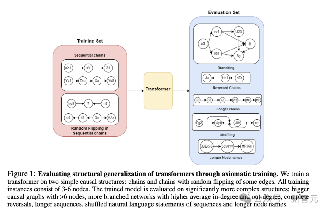 训练和评估的整体流程如图1所示,Transformer模型在顺序链和带有随机翻转的链上训练,长度为3~6个节点。