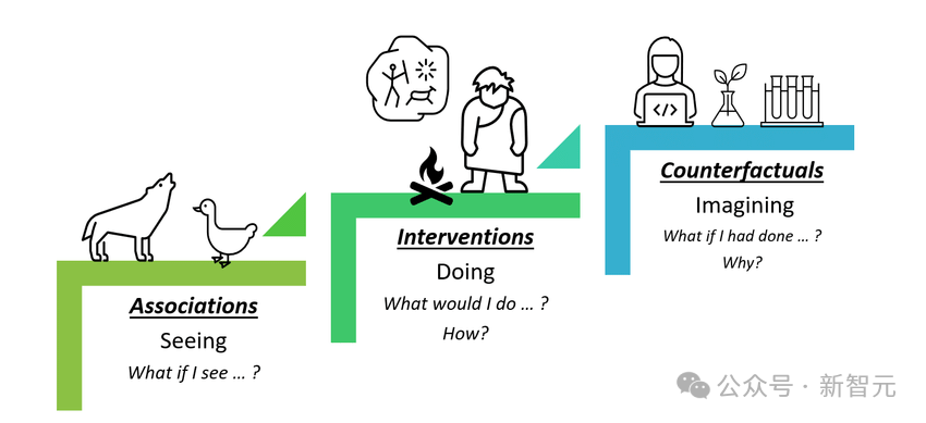 图灵奖得主Judea Pearl曾通过如下的「因果关系阶梯」(ladder of causation)定义了可能的因果推理类型。
