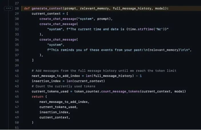 OpenAI 的聊天补全 API 拥有“系统”角色的概念,用于为 GPT 提供初始身份、约束和上下文。你可以看到在上述代码片段中,relevant_memory 被注入到对话中,作为 GPT 过去事件的引用。此外,Auto-GPT 还将相应角色完整的聊天对话传递给了聊天补全 API(最大长度为 token 的上限)。