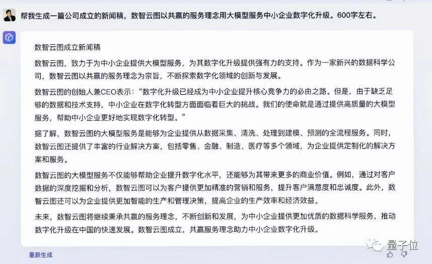 至于写个公司成立的新闻稿?对文心一言来说似乎也不成问题: