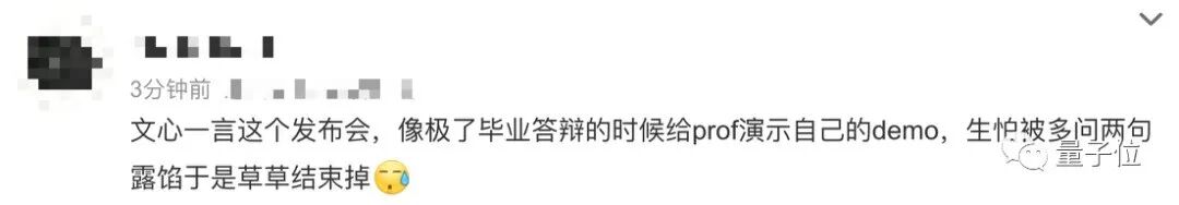 还有网友感觉,文心一言的发布会像极了毕业答辩的自己(doge):