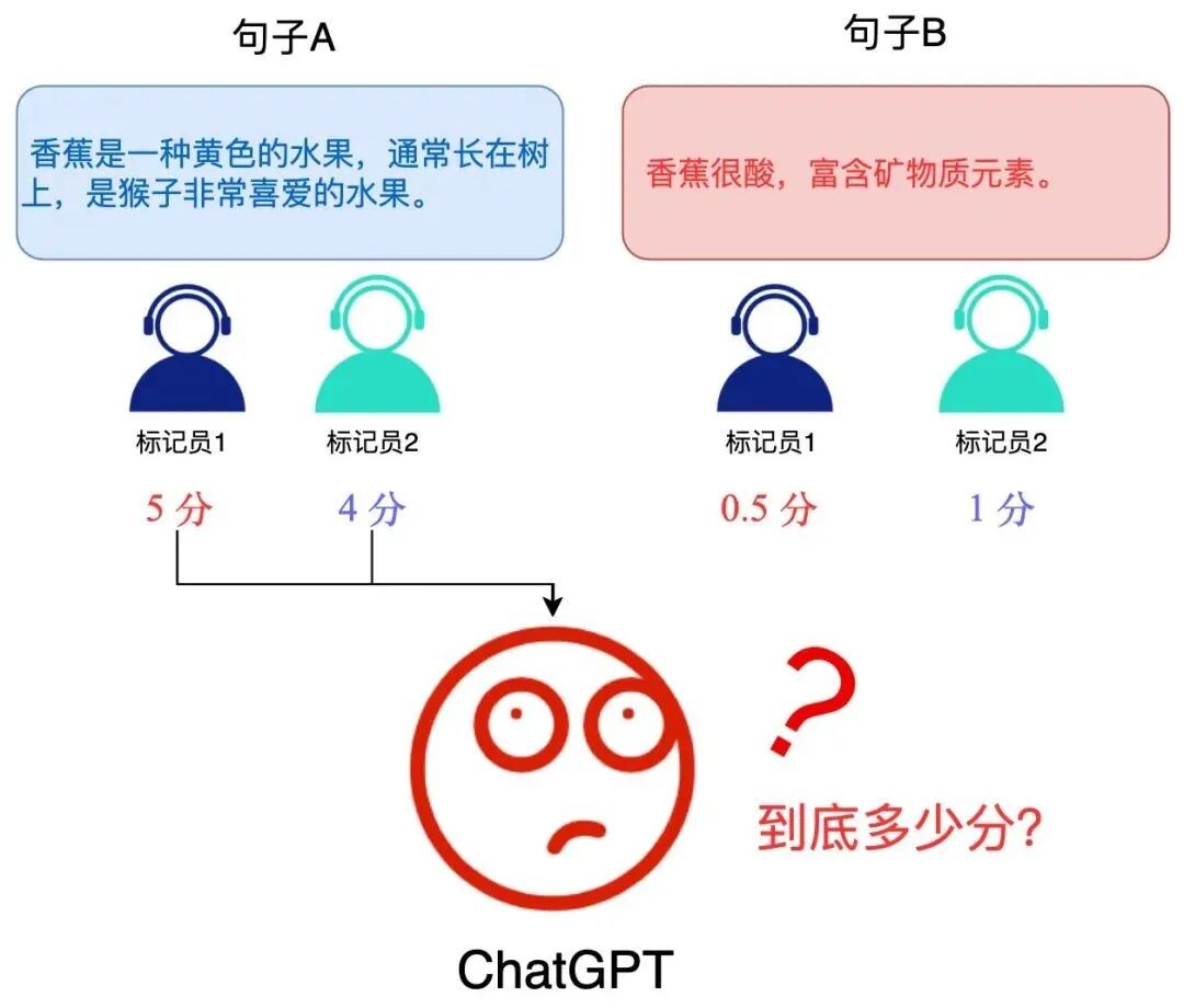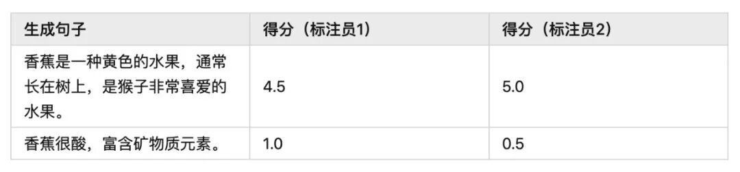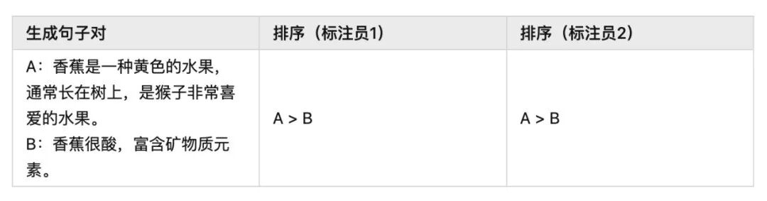 但如果我们只让标注员对这两个答案进行好坏排序,就能得到统一的结果: