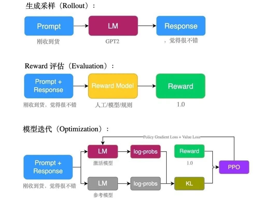 现在,我们将利用强化学习(PPO)的方式来对生成模型进行「好评生成」的训练。