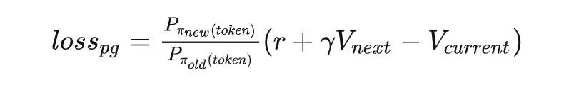 for t in reversed(range(gen_len)): nextvalues = values[:, t + 1] if t < gen_len - 1 else 0.0 delta = rewards[:, t] + self.ppo_params['gamma'] * nextvalues - values[:, t] # 优势函数:r + Vnext - V lastgaelam = delta + self.ppo_params['gamma'] * self.ppo_params['lam'] * lastgaelam # GAE, 用于平衡 bias 和 variance advantages_reversed.append(lastgaelam) advantages = torch.stack(advantages_reversed[::-1]).transpose(0, 1)logits, _, vpred = self.model(model_input) # 跑一遍模型,得到句子中每个token被选择的概率logprob = logprobs_from_logits(logits[:,:-1,:], model_input[:, 1:]) # 将概率取log对数ratio = torch.exp(logprob - old_logprobs) # log相减,等同于概率相除pg_losses = -advantages * ratio