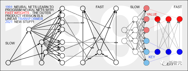 这些所谓的「快速权重程序员」(Fast Weight Programmers)或「快速权重控制器」(Fast Weight Controllers)就像传统计算机一样分离了存储和控制,但以一种端到端差异化、自适应,以及神经网络的方式。