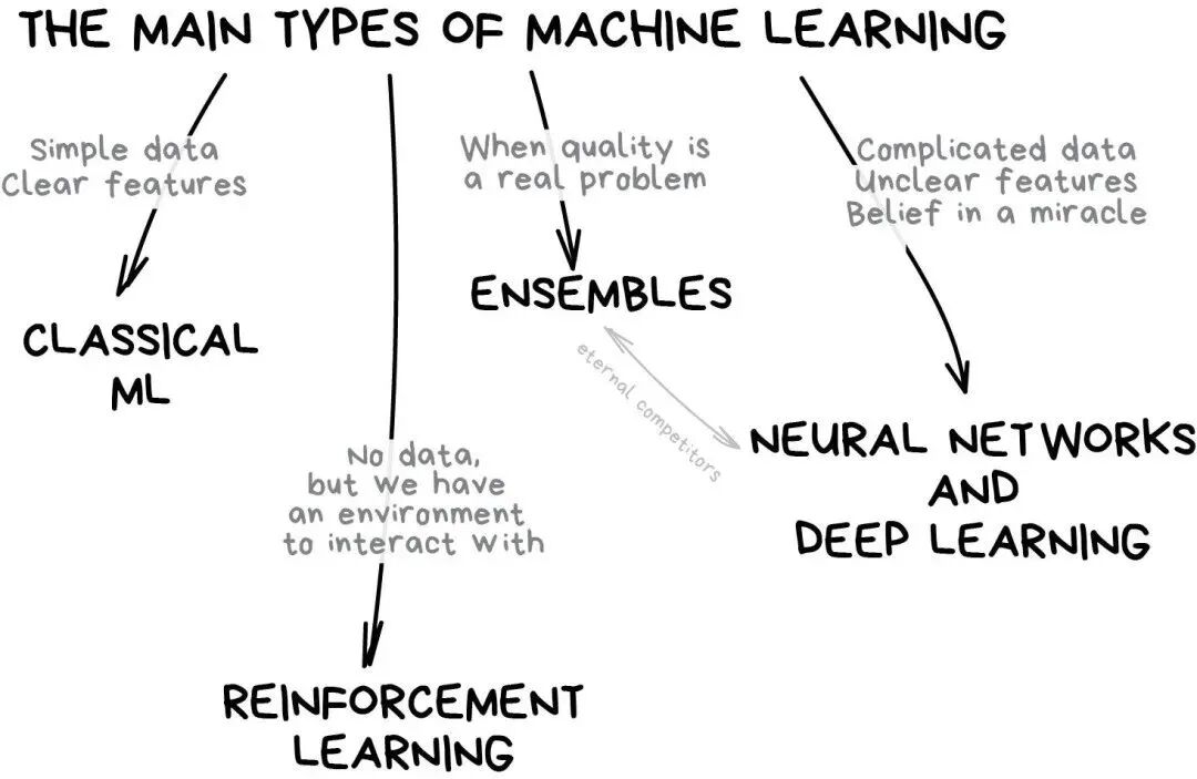 经验法则(rule of thumb)表明,数据越复杂,算法就越复杂。对于文本、数字、表格这样的数据,我会选择经典方法来操作。这些模型较小,学习速度更快,工作流程也更清晰。对于图片、视频以及其他复杂的大数据,我肯定会研究神经网络。