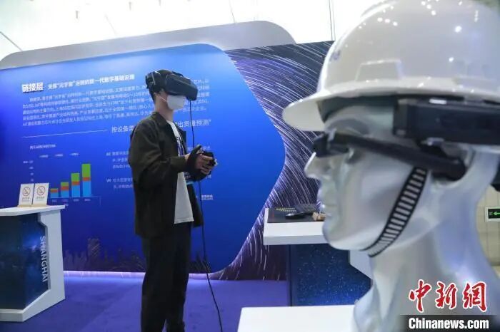 资料图:在2022上海信息消费节开幕式场外“元宇宙@上海”展区,上海元宇宙代表企业展示产品方案。汤彦俊 摄