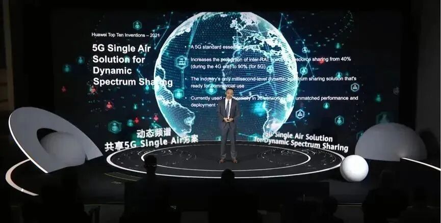 第九项:5G Single Air。作为已纳入 5G 标准的技术,这项发明能够让网络使用更多共享频谱资源,把 5G 跨制式频谱资源的共享比例从 4G 时代的 40% 提升到了 90%。基于这项发明,华为实现了业界唯一的毫秒级动态频谱共享商用能力,目前该发明在全球已成功商用26局。