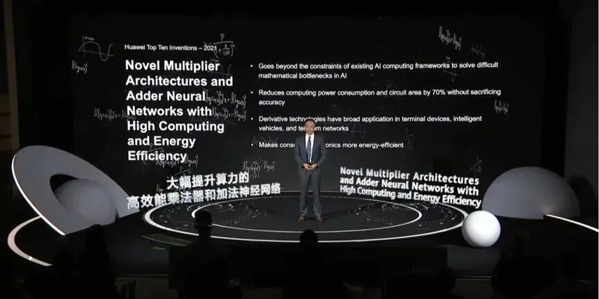 第一项:大幅提升算力的高效能乘法器和加法神经网络。这项发明能够在保证精度的前提下,使计算功耗和电路面积下降70%,相关技术可以广泛应用于各种终端设备、消费电子产品、智能汽车和电信网络。