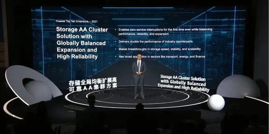 第十项:储全局均衡扩展高可靠AA机群方案。这项发明实现了全球首个对称双活高端存储系统,性能两倍于业界,并能满足交通、能源、金融等领域的扩展和业务零中断的要求。