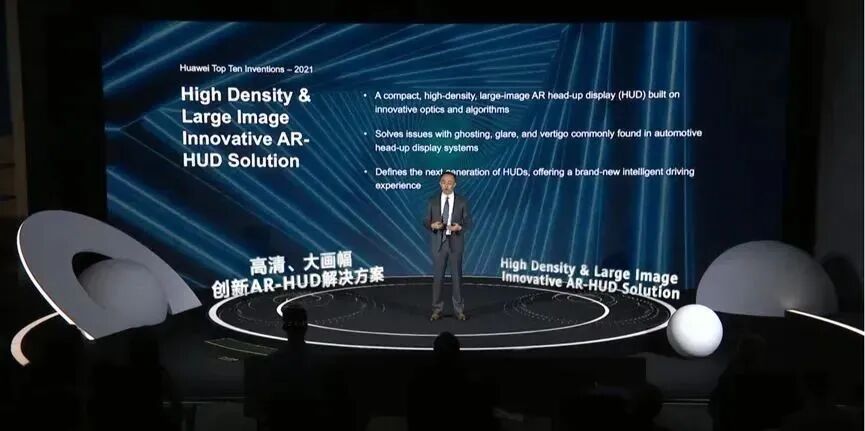 第五项:高清、大画幅创新AR-HUD解决方案。这项发明解决了智能汽车抬头显示系统的重影、眼花和眩晕问题,大幅缩减体积,同时释放计算资源,降低时延,让消费者看得清、买得起、体验好。
