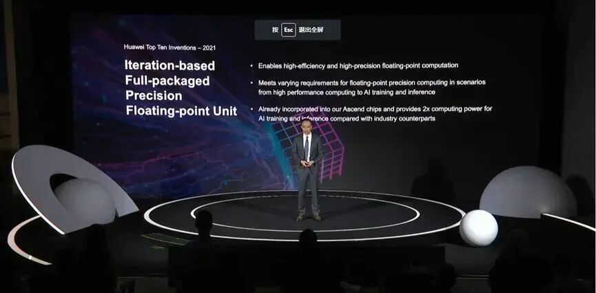 第四项:基于叠代的全精度浮点单元。这项发明实现了高效率和高精度的算力融合,解决了高性能计算、AI推理等多场景的浮点计算需求。这项发明已经在昇腾芯片中投片。