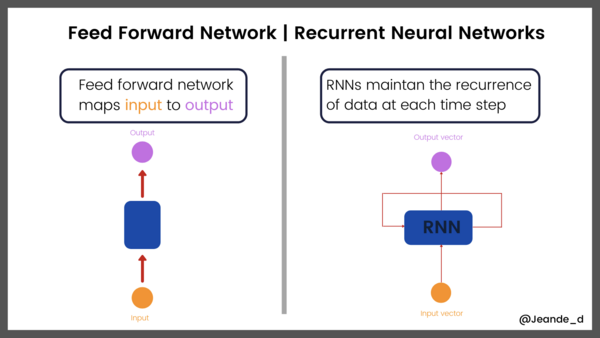 循环神经网络是一类旨在处理序列的神经网络。与多层感知机 (MLP) 等前馈网络不同,RNN 有一个内部反馈回路,负责记住每个时间步长的信息状态。