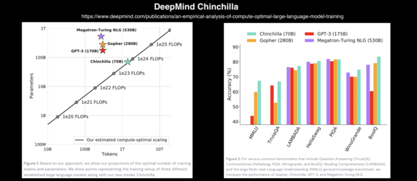 GPT-n 系列型号仅仅是个开始。还有其他更大的模型接近甚至比 GPT-3 更大。如:NVIDIA Megatron-LM 有 8.3B 参数;最新的 DeepMind Gopher 有 280B 参数。2022 年 4 月 12 日,DeepMind 发布了另一个名为 Chinchilla 的 70B 语言模型,尽管比 Gopher、GPT-3 和 Megatron-Turing NLG(530B 参数)小,但它的性能优于许多语言模型。Chinchilla 的论文表明,现有的语言模型是训练不足的,具体来说,它表明通过将模型的大小加倍,数据也应该加倍。但是,几乎在同一周内又出现了具有 5400 亿个参数的 Google Pathways 语言模型(PaLM)!