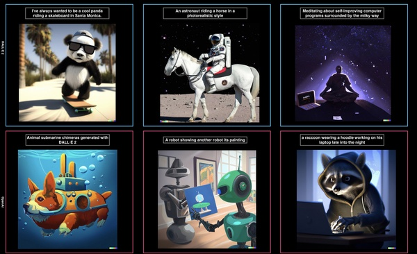 上面呈现的 DALL·E 2 生成的图像取自一些 OpenAI 员工,例如 @sama、@ilyasut、@model_mechanic 和 openaidalle。