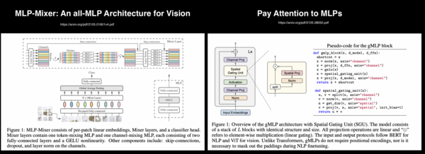在 2021 年 7 月,研究人员发表了两篇基于感知机的论文。一个是 MLP-Mixer: An all-MLP Architecture for Vision,另一个是 Pay Attention to MLPs(gMLP).