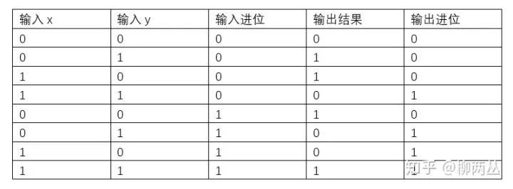 小红拿过来看了看,说:“最后一行写错了,输出结果应该是1。你想啊,1+1+1应该等于11,左边这一位是输出进位,右边这一位是输出结果,都是1,所以输出结果应该是1。”