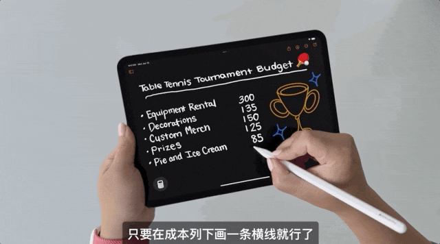 比如正在计算项目预算,在一串开支数字下画个横线,答案就自动计算出来。非常自然,就像是在纸上手动计算一样。