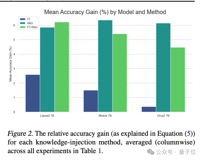 微软一篇论文比较RAG与无监督微调(又叫持续预训练),发现对于新知识RAG性能始终优于微调。