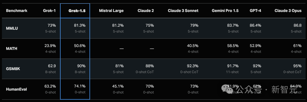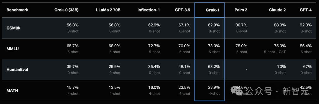 在不同的基准测试中,Grok-1在数学、编程、MMLU中取得了领先GPT-3.5的优势。