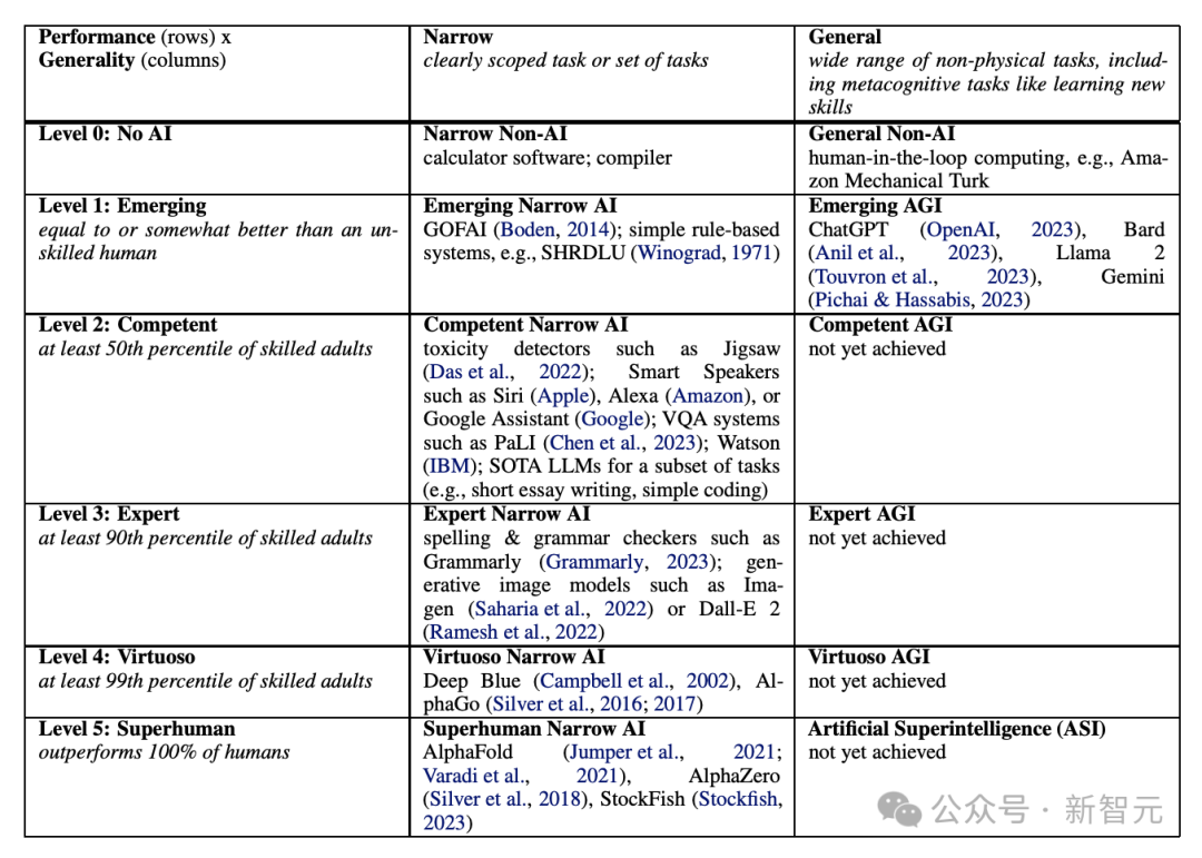 去年11月,DeepMind团队发表的一篇论文「Position: Levels of AGI for Operationalizing Progress on the Path to AGI」中,详细定义了AGI的不同级别。