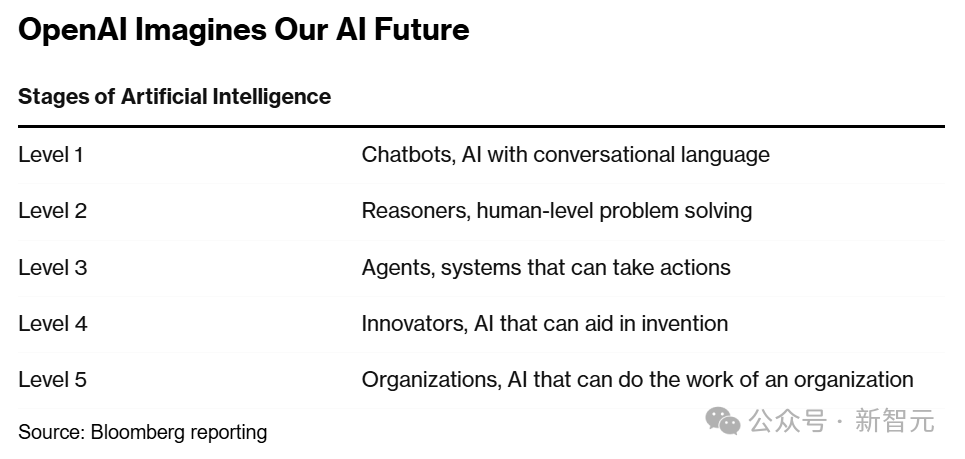 从图中明显可以看出,OpenAI将最终抵达AGI终点,划分了五大等级: