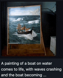还有一幅画,画面上航船前行,波涛拍打: