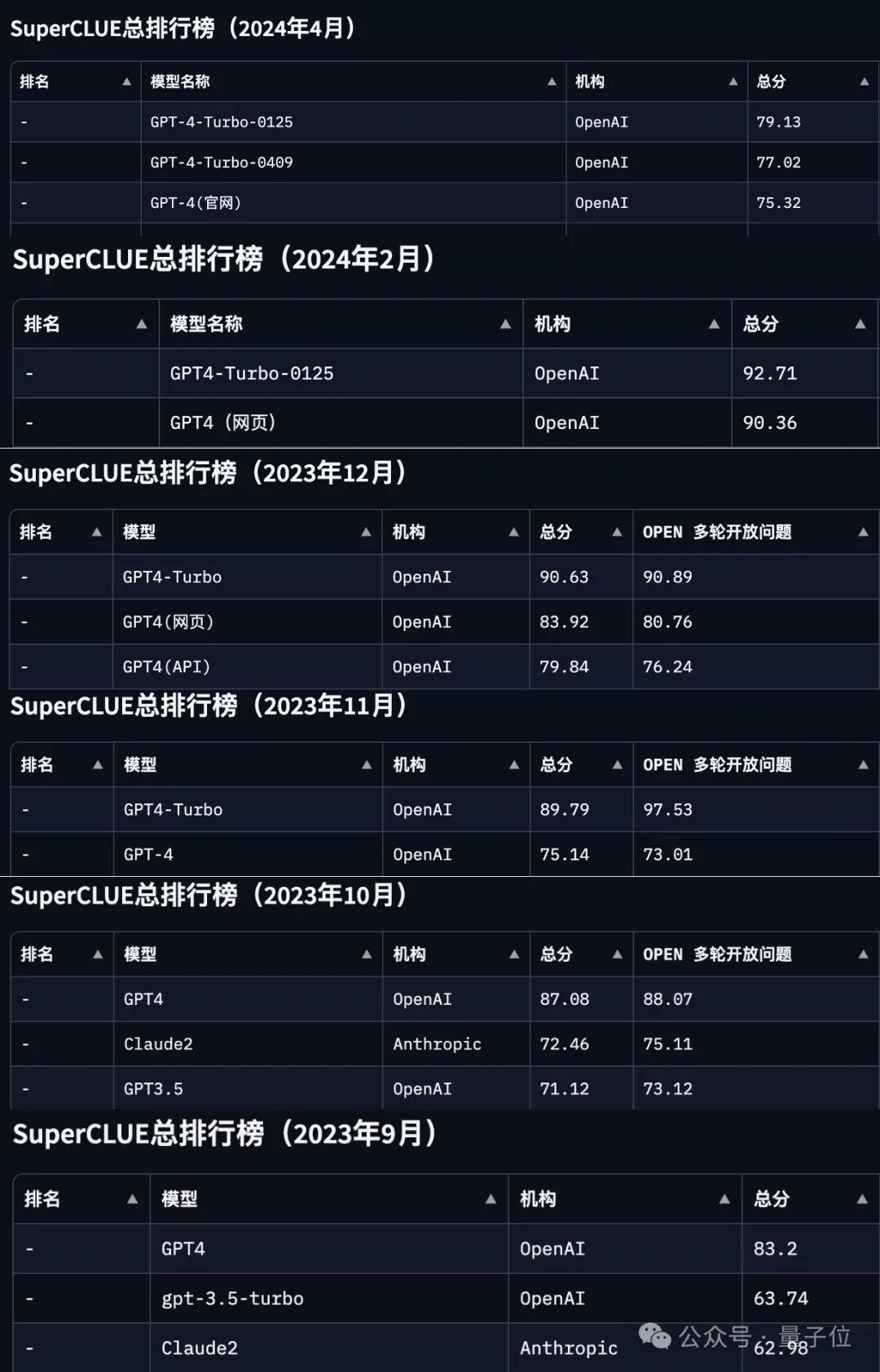 以82.20分的成绩位居第一,同样超越了GPT-4 Turbo。