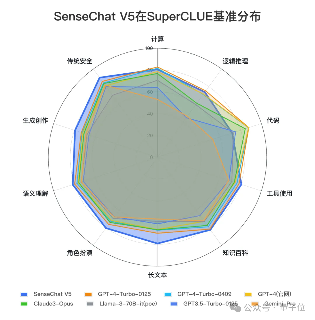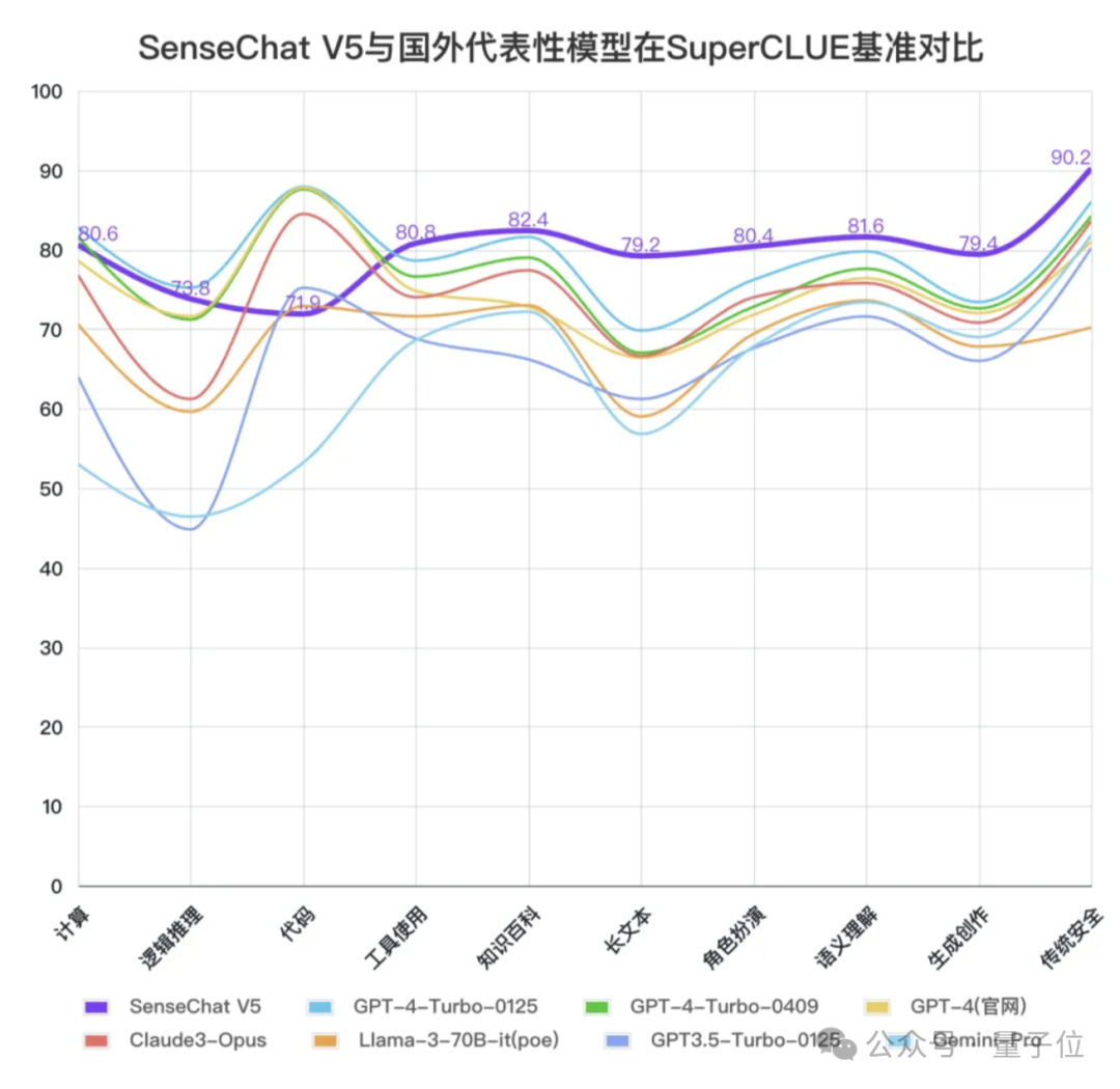 其实对于这个问题,商汤在4月底将自家日日新大模型SenseNova版本迭代到5.0之际,就已经有所透露;当时商汤锁定的定位就是全面对标GPT-4 Turbo。