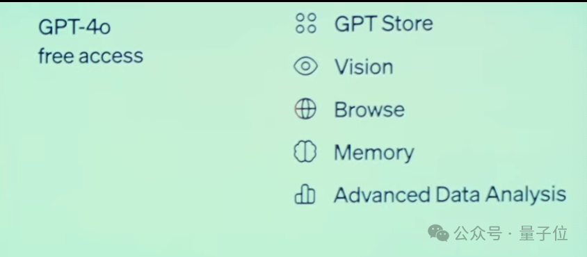 这还是一份给所有人的大礼,GPT4-o与ChatGPT Plus会员版所有的能力,包括视觉、联网、记忆、执行代码、GPT Store……