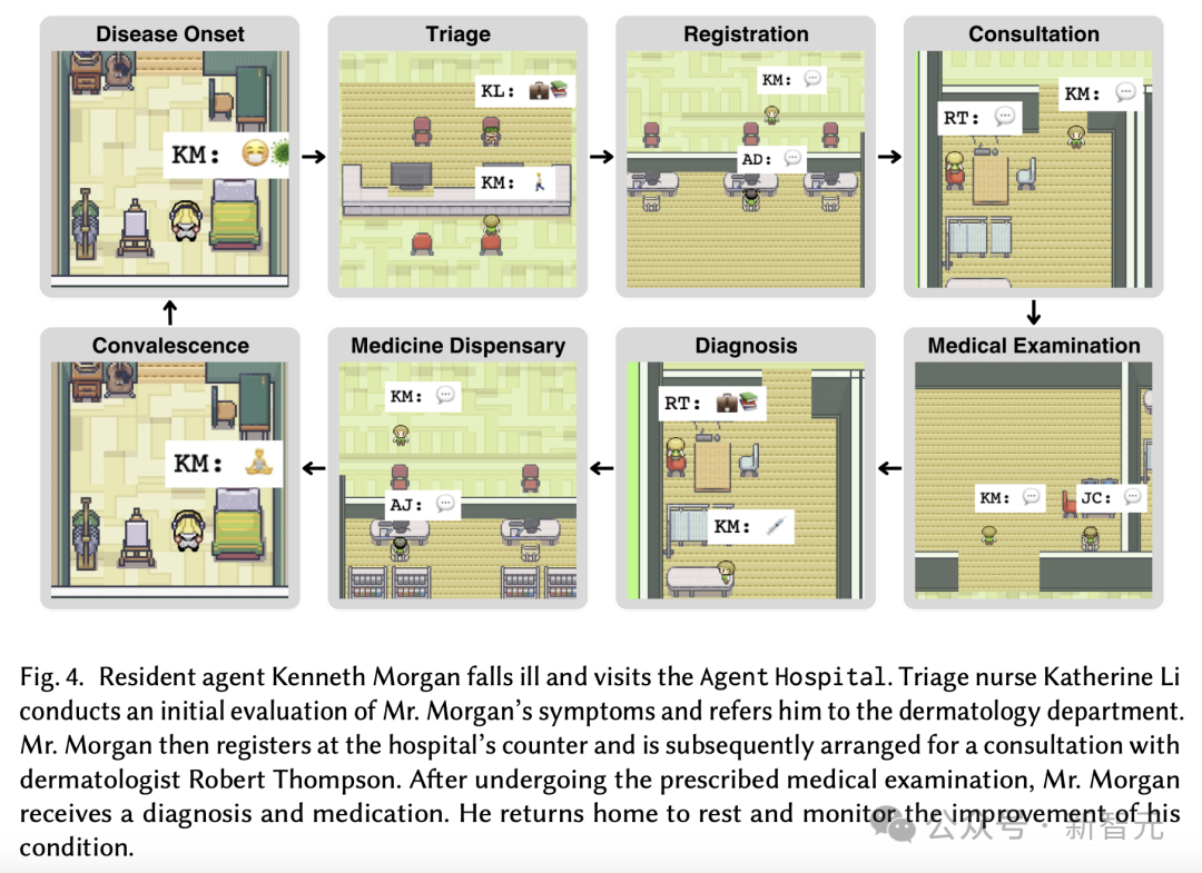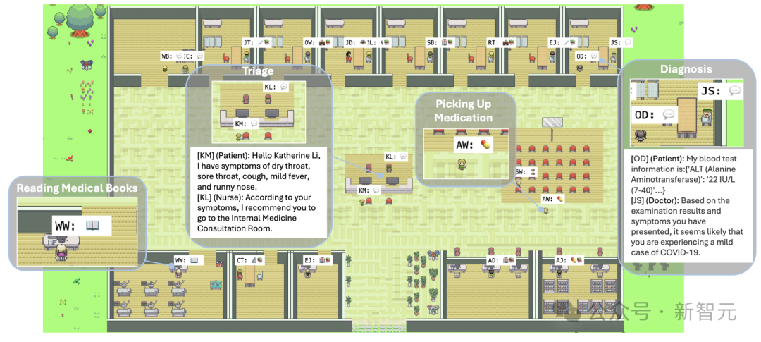 在这个虚拟世界中,所有的医生、护士、患者都是由LLM驱动的智能体,可以自主交互。