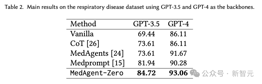 MedAgent-Zero在使用GPT-3.5时,比SOTA方法Medprompt高出 2.78%,在使用GPT-4时比SOTA方法MedAgents高出1.39%。