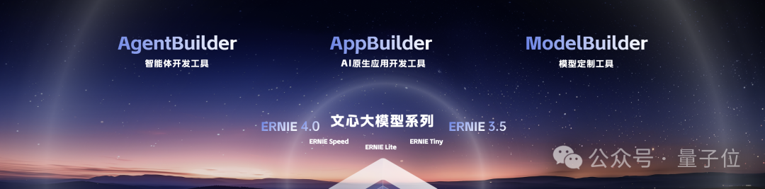 我们还提供基于大模型来开发各种应用的工具,包括智能体开发工具AgentBuilder,AI原生应用开发工具AppBuilder,以及各种尺寸的模型定制工具ModelBuilder。