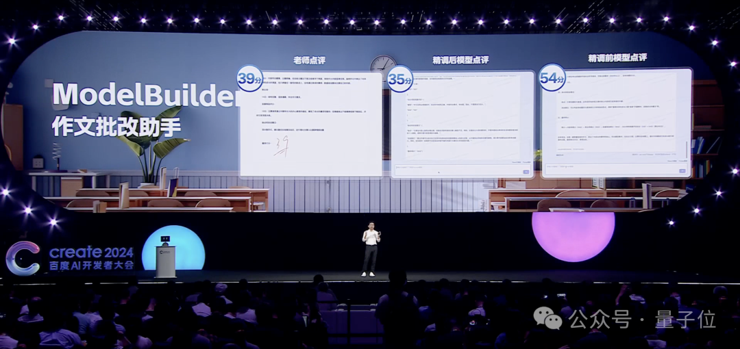 我们以教育行业的作文批改场景来举例。因为作文批改有明确的评分标准,并且不同年级对作文的要求和打分标准,也是不同的。这就需要模型精调,让大模型输出的结果,更符合特定的要求。