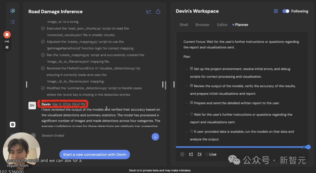 在视频的最后,研究者You表示Devin做得好。而实际上,Devin完成的任务对于AI来说的确很酷。