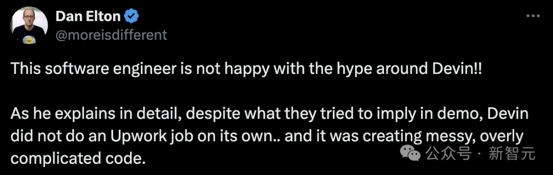有网友表示,「正如博主详细解释的那样,尽管其试图在演示中暗示,Devin并不能独立完成Upwork的工作。它正在创建混乱、过于复杂的代码」。