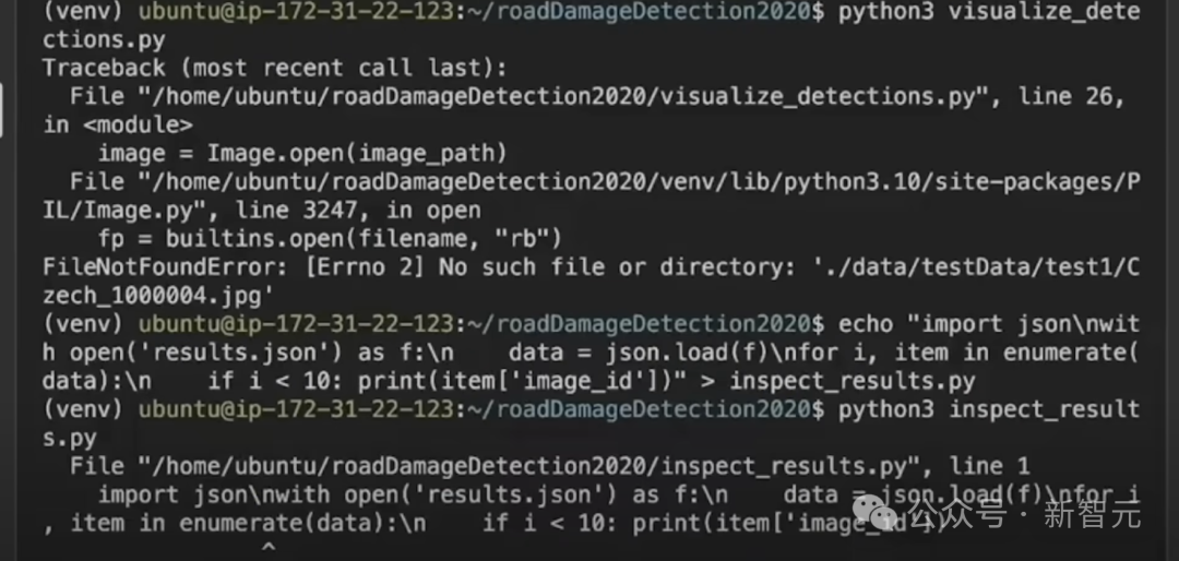 回到命令行,如果放大窗口的其他部分,便会看到,Devin将一些内容写入一个名为inspect_results.py的文件中,接着运行Python执行这个文件,结果出现了语法错误。