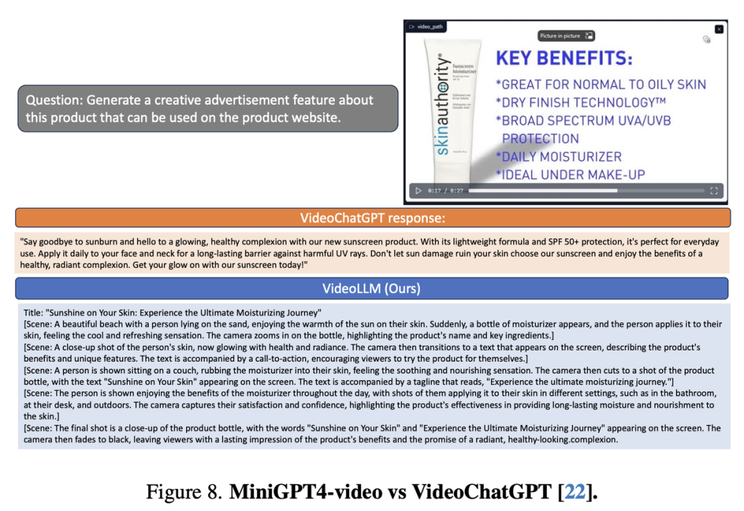 总之,MiniGPT4-video有效地融合了视频领域内的视觉和对话理解,为视频问答提供了一个 引人注目的解决方案。