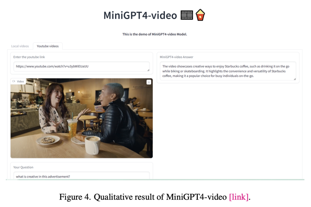 值得一提的是,MiniGPT4-Video能够同时处理时态视觉数据和文本数据,因此善于理解视频的复杂性。