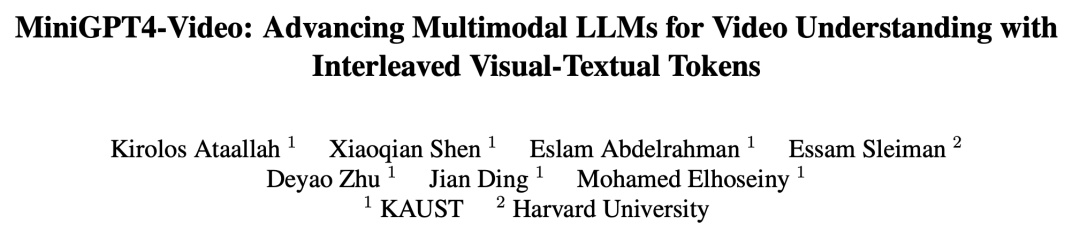 最近,来自KAUST和哈佛大学的研究人员提出了MiniGPT4-Video——专为视频理解而设计的多模态大模型。