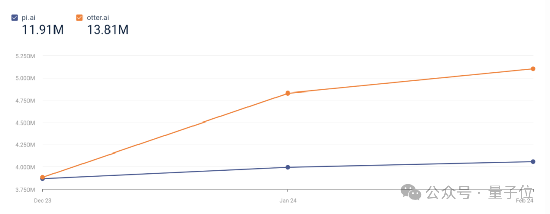 但是过去三个月,Pi网站每月平均访问量只有不到400万左右。这意味着Pi在全球AI产品流量排名至少在50位开外了。