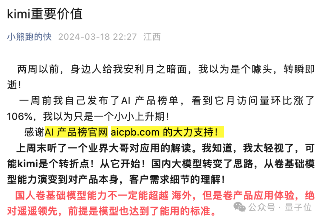 尤其产品应用体验方面,一直被视为国产市场的强项。有声音还认为,Kimi或许就是一个转折点,接下来国内大模型市场的思路可能要从基础能力演变转向对产品本身、客户需求细节的理解。